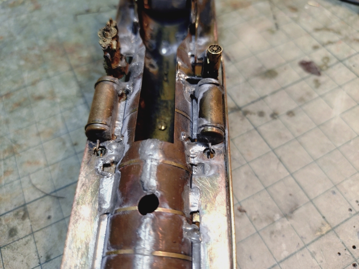 エアータンクにはこちらも真鍮線を植え込んでランボードに開けた穴に差し込み、位置出しをしてからハンダ付け。オダマシ工法連発です!(^^ゞ
