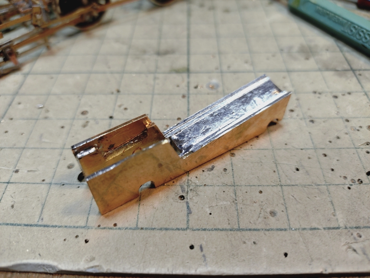 フレーム内の補重は効いて低重心の落ち着いた足回りになり、作業をしたかいがありました。頭の中では簡単にフレーム内にウェイトを仕込めば良いやと考えましたが、出たとこ勝負の現物合わせの連続では矢張り調整が難しく、足回りだけはキチンと設計図を描かないと駄目ですよ!と言う先人の教えが身に沁みました。(^^ゞ 真鍮ゴリゴリが好きなばかりに考えなしに工作台に座る製作姿勢ではいけませんね〜(^^ゞ。