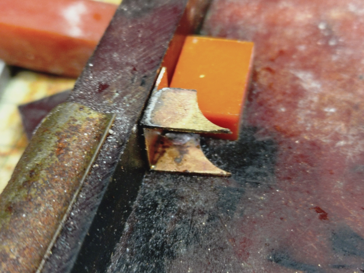 サドルの側板は真っ直ぐな儘取り付けて前後板をガイドにして曲げる横着技法です。しかしこうした小物を曲げ加工するにはエッチングキットの板厚は厚すぎます。(^^ゞ