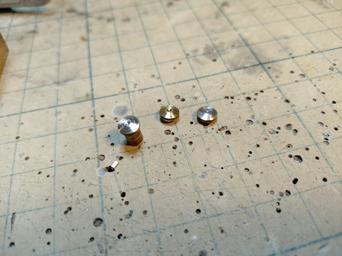 気持ちとしてはボイラーと煙室を先に作ってからディテールに進みたいのですが、ランボードをキャブに固定しないでボイラーをキャブに取り付けるのは難易度が高いので先にチマチマと給水口パーツを作りました。(^^ゞ