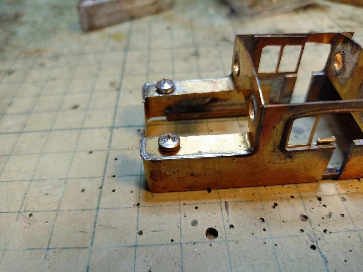 この上回りはランボードに固定するのですが、前々作の1150型で先にランボードを固定した為にディテールの取付けをする際に表からハンダ付けせざるを得なくなり、キサゲに時間を喰われた反省から先にディテールパーツを取り付けております。(^^ゞ