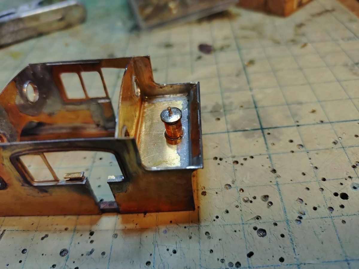 230型の給水口はお櫃の蓋のように外径が大きい蓋を被せていたようなので、嵌め込んだ輪切りのパイプを蓋部分に見せます。(^^ゞキッチリ嵌め込んでハンダ付けしました。