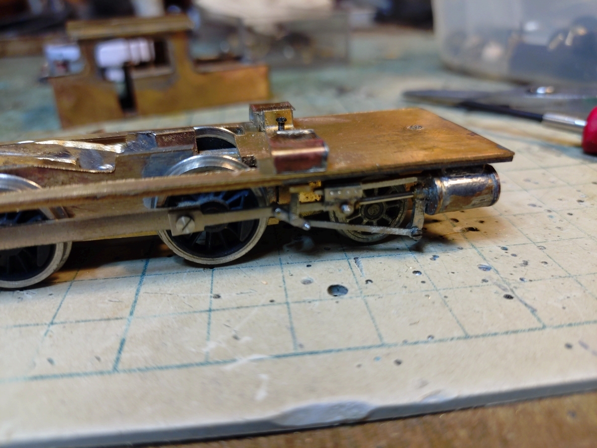 前からバルブカバー、ラジアスロッドカバー、ジョイ式弁装置カバー、動輪のスプラッシャーが4連で並ぶ独特の雰囲気です。この連続も製作動機のひとつです。(^^)!