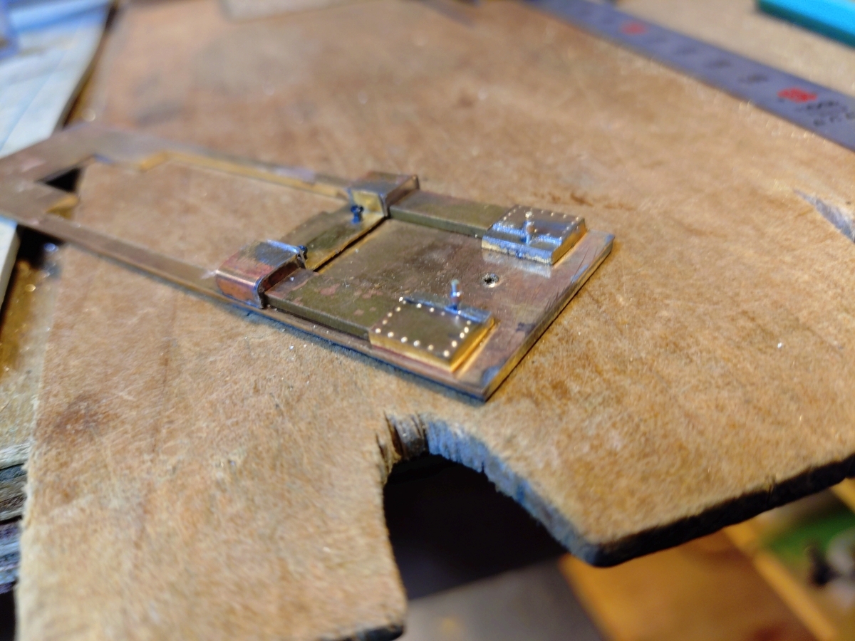 230型の空気制動改造機ではサイドタンクギリギリまでエアータンクを後退させた車両と火室両脇まで前進させた形態があります。今回はエアータンクを後退させるつもりですので、ランボード上がのっぺりしないようにカバーを4連としました。(^^)!